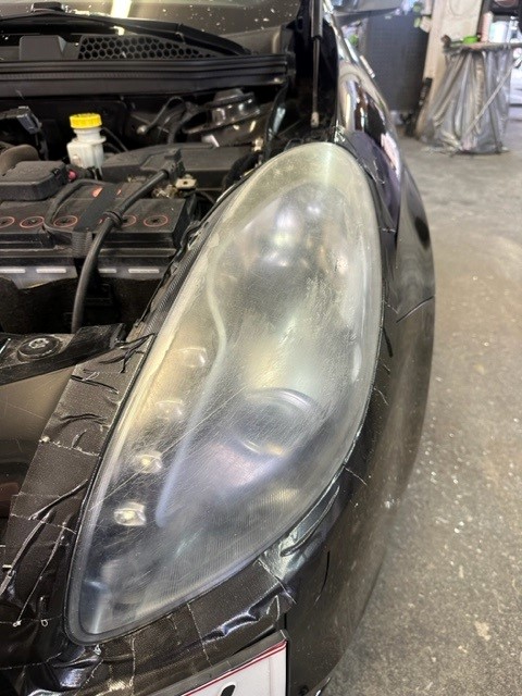 Bei der Scheinwerferaufbereitung werden die verwitterten Gläser sorgfältig abgeschliffen und beschichtet, um die Leuchtkraft der Scheinwerfer wiederherzustellen.
